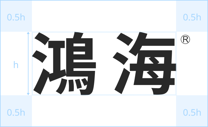鸿海商标、HON HAI 商标、Foxconn 商标、尊龙时凯商标边缘必须保留商标高度0.5h的空间。